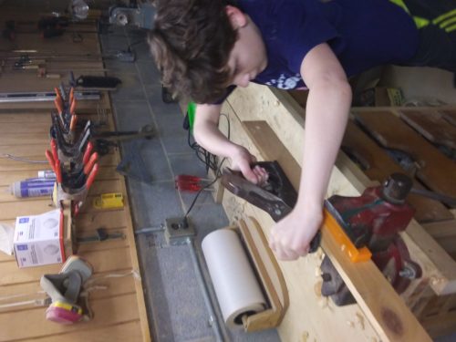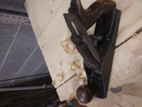 Also, the boys are learning a new tool in case we need it. And by ‘new’ I mean a fourth-generation hand plane that was apparently purchased from Montgomery Ward Inc. Nothin but the best here…