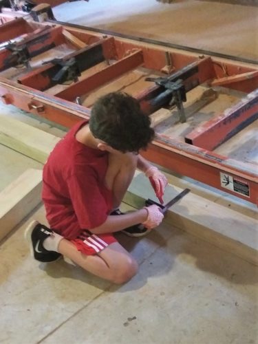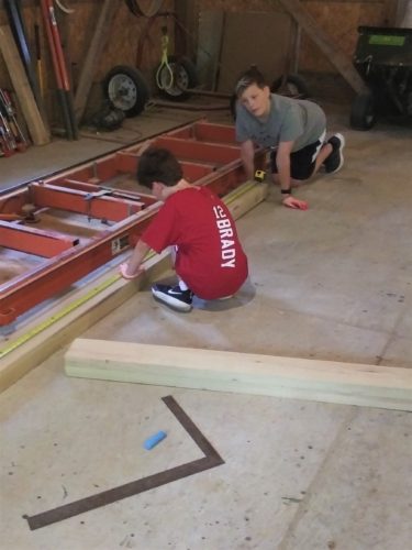I know it’s cruel and unusual to make these guys do math in the off-season, but cmon, they’re both in their respective ‘egg-head math’ groups in school, so why not layout out the roof lines with a little geometry. It’s not like it’s fractal geometry…