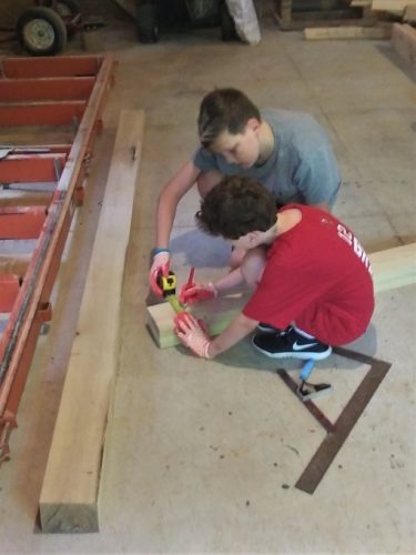 We’re making parts one at a time, posts, plates, ridge beam, girts, tie-beams, and more. So far only three flavors: locust, cherry, and a bit of elm. But there will be others, I’m sure, depending on which way the wind blows in the woodlands.
