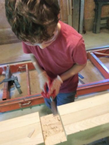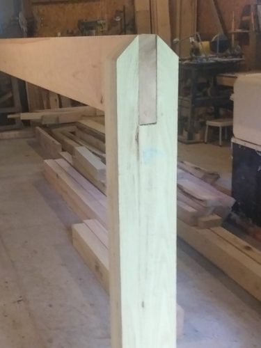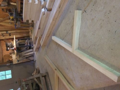 We’re getting started on some joinery work. We don’t have the specialized tools that are ideal for this, but as we always say – we use what we’ve got, and we do fine. Plus, the labor here is so cheap… The sawmill itself worked well for notching in the ridge beam stanchions. And I’m liking the fit of the door studs and girts. “They go together like Lincoln Logs.”