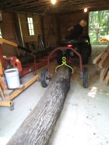 Thanks to Grammie, silver maple logs are arriving regularly at the mill. We’re trying to get the most we can out of these. We need rafters, lots of rafters…