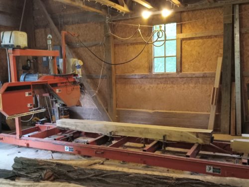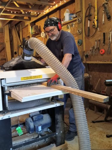 Because the woodlands critters have taken a shine to the soft pine brick moulding used all over our place, today I’m sawing rock-hard black locust and milling it into new brick moulding. Jeesh.