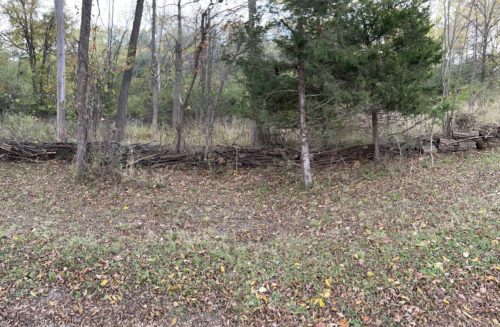 I built a wall of woodlands debris along a 400 ft section of our road front property line. It was a very Zen experience – except for a run-in with a yellow jacket nest… Photo credit LHB.